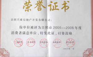 ·2006年1月,興業(yè)房地產(chǎn)獲得“2005-2006年度消費者滿意單位”