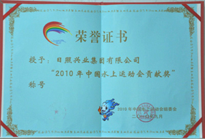 ·2010年9月,授予興業(yè)集團(tuán)“2010年中國(guó)水上運(yùn)動(dòng)會(huì)貢獻(xiàn)獎(jiǎng)”稱(chēng)號(hào)