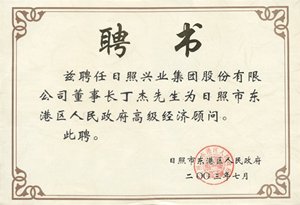 · 2003年7月,茲聘任丁杰董事長為日照市東港區(qū)人民政府高級經(jīng)濟(jì)顧問
