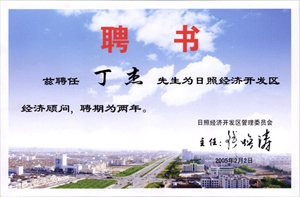 · 2005年2月2日,茲聘任丁杰董事長日照經(jīng)濟(jì)開發(fā)區(qū)經(jīng)濟(jì)顧問