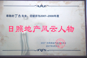 · 2007年9月30日,丁杰董事長榮獲“日照地產(chǎn)風(fēng)云人物”榮譽(yù)稱號