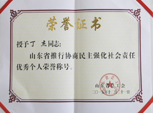 ·2015年12月,山東省總工會授予丁杰董事長“山東省推行協(xié)商民主強(qiáng)化社會責(zé)任優(yōu)秀個人”榮譽(yù)稱號。
